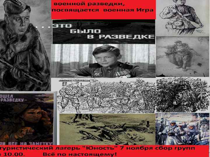 ПОЛОЖЕНИЕ об военно-спортивной игре «…это было в разведке» в рамках проведения месячника патриотизма • Цели и задачи 1. «. …это было в разведке» проводится с целью: пропаганды здорового образа жизни, внедрения физической культуры и спорта в повседневную жизнь учащихся; 2. вовлечения детей и юношества в регулярные занятия физической культурой и военно-прикладными видами спорта, повышение уровня физической подготовленности личного состава; 3. профессионального ориентирования и патриотического воспитания школьников; допризывной подготовки школьников.