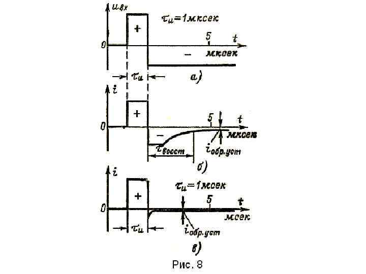 • КД 202 Р К - исходный полупроводник кремний; Д- выпрямительный диод; 2 - средней мощности; 02 - номер разработки; Р - максимально допустимое обратное напряжение 600 В. • КС 162 А К - исходный полупроводник кремний; О - опорный диод (стабилитрон); 162 - малой мощности (150 м. Вт); напряжение стабилизации (1 - 9, 9)В; А - напряжение стабилизации (5, 8 - G, G)B; максимальный обратный ток стабилизации 22 м. А, допустимая мощность рассеяний 150 м. Вт.
