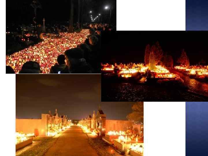 Якщо могили родичів знаходяться за межами Польщі, або у інших містах, то для таких людей посеред будь-якого цвинтаря стоїть величезний хрест, де можна поставити ліхтарик і помолитися за тих, хто похований занадто далеко. Якщо говорити про кладовища взагалі, то в Польщі вони частенько покриті кам’яними або бетонними плитами. За ними майже не треба доглядати, на них не ростуть квіти, їх часто не оточує оградка. Між сусідніми могилами іноді дуже мало місця, іноді могили розташовані нерівномірно і пройти там частенько не так вже й легко, ходити можна по спеціальних доріжках між могильних рядів. Крім того в Польщі дуже поширена практика склепів, в яких похована не одна людина, а декілька. Деякі склепи виглядають дуже вражаюче і навіть охороняються, як пам’ятки архітектури
