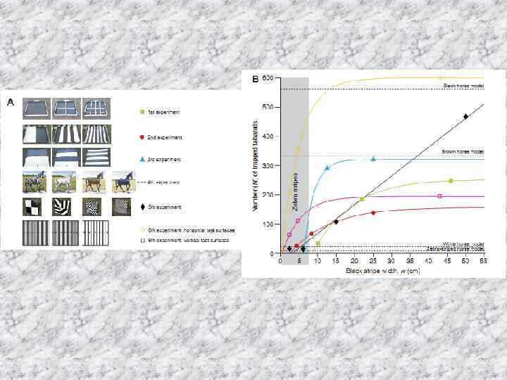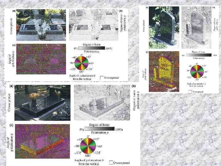 Colour pictures (row 1), patterns of the degree of linear polarization, d (row 2) and angle of polarization, a (clockwise from the vertical) (row 3) of the zebra-striped sticky horse model used in experiment 4 and a real-size zebra model covered by an Equus burchelli coat measured by imaging polarimetry in the blue (450 nm) part of the spectrum from the side (A, C, F) and from behind (B, D, E, G). The optical axis of the polarimeter was – 20 deg from the horizontal for A–B and 0 deg for C–G. The zebra models were sunlit (A–E) or shady (F, G). The polarimeter faced the sun (C, E) or the sun was to the left (A, D) or behind the polarimeter (B)