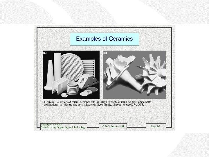 Mechanical Properties The tensile strength increases with decrease in grain size and porosity UTS= UTSoe-n. P P= volume fraction of pores in the solid The Modulus of elasticity of ceramics is related to the porosity E= Eo( 1 - 1. 9 P+ 0. 9 P 2) Eo= the modulus at zero porosity Ceramics are have less thermal-shock tolerance and impact toughness than metals and thermoplastics. This is due to their lack of ductility. Ceramics have static fatigue caused by cyclic loading. Methods to pre-stress ceramics are: – – Heat treatment and chemical tempering Laser treatment of surfaces Coating with ceramic of different characteristics Surface-finishing operations