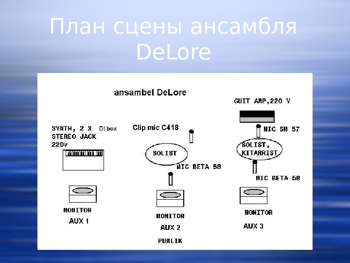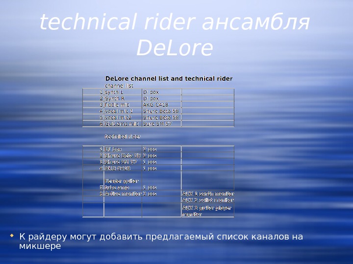technical rider ансамбля De. Lore К райдеру могут добавить предлагаемый список каналов на микшере