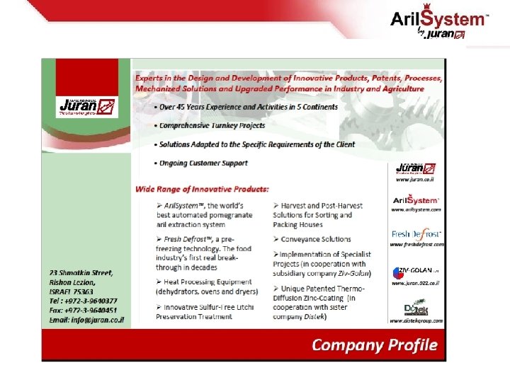 Pomegranate postharvest technologies – Avner Galili “Juran Metal Works”, ISRAEL