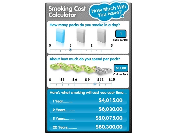 Пассивное курение • Дополнительно 50. 000 смертей в год среди некурящих • 3. 500 от рака легких • 46. 000 от сердечных заболеваний http: //www. cancer. gov/newscenter/entertainment/tipsheet/secondhand-smoke
