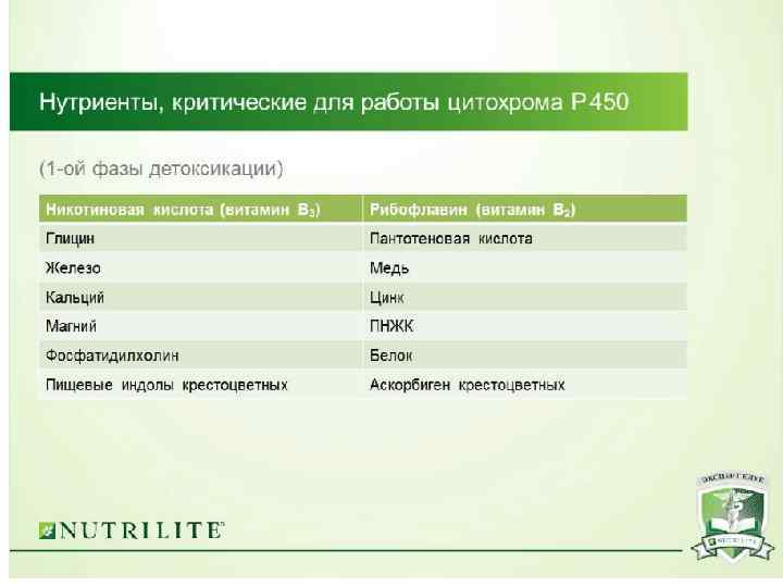Оздоровительная программа эндоэкологической реабилитации рассчитана на 3 недели и полностью адаптирована на БАД NUTRILITE. Включает: • Пищевые волокна • Чеснок • Витамин С плюс • Витаминно-минеральный комплекс Дейли или Дабл Х • Омега-3 • Печень актив • Кальций, магний с витамином Д