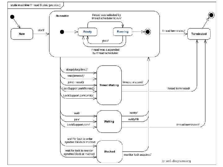 Что за «псевдоязык» ? • -> 37 m: R (эта запись означает, что при переходе управления на строку 37 главный поток main (сокращенно m), переходит в состояние Runnable) 38 -> t: N (при передаче управления с 38 строки поток t переходит в состояние New) 40 -> t: R (при передаче управления с 40 строки поток t находится в состоянии Runnable, потому что был вызван метод t. start())
