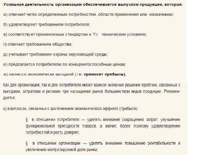 Качество – совокупность характерных свойств, формы, внешнего вида и условий применения , которыми должны быть наделены товары для соответствия своему назначению. Все эти элементы определяют требования к качеству изделия, которые конкретно воплощены на этапе проектирования в технической характеристике изделия, в конструкторской документации, в технических условиях, предусматривающих качество сырья, конструктивные размеры и т. д. В литературе понятие качества трактуется поразному. Однако основное различие в понимании качества определяется различиями в условиях командно-административной и рыночной экономике. В условиях первой качество трактуется с позиции производителя, а в рыночной с позиции потребителя.