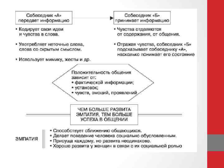 Развитие эмпатии • 3. Высокий уровень - умение сразу войти в состояние собеседника, прочувствовать его переживания на протяжении всего общения. • 2. Средний уровень - в процессе общения у человека возникают отрывочные представления о переживаниях собеседника. • 1. Низший уровень - своеобразная слепота к состоянию, переживаниям другого.