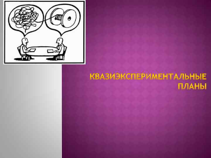 Квазиэкспериментальн ый план используется в исследованиях, в которых независимые переменные (элементы, влияние которых на результат измеряется в эксперименте) выбира ются из естественной среды.