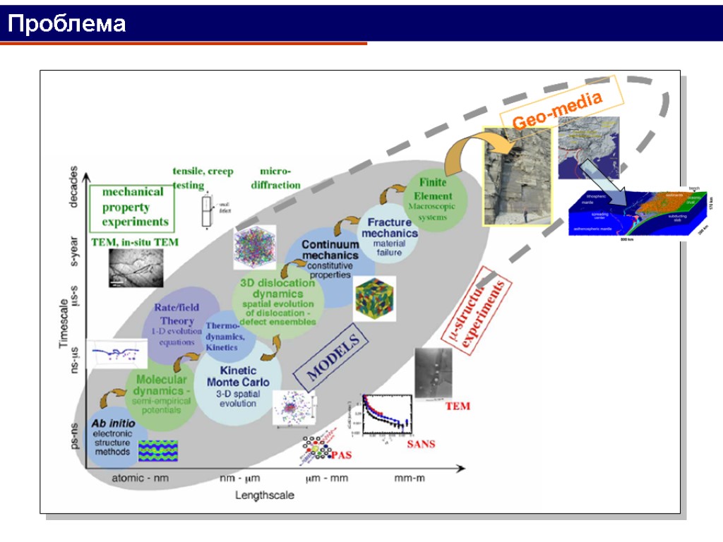 Можно ли в рамках единого формализма моделировать материалы/среды во всем спектре масштабов от нано до гео?