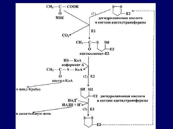 АЦЕТИЛ-Kо. А ОКСАЛОАЦЕТАТ 8 НАДH НАД+ МАЛАТ Н 2 О 7 ФУМАРАТ ФАДH 2 6 ФАД СУКЦИНАТ Н 2 О 1 HS-Kо. А ЦИТРАТ 2 ИЗОЦИТРАТ ДЫХАТЕЛЬНАЯ ЦЕПЬ 5 ГТФ CO 2 3 НАД+ НАДH -КЕТОГЛУТАРАТ НАД+ CO 2 4 НАДH СУКЦИНИЛ-Ko. A ГДФ+H 3 PO 4