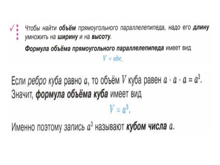 Понятие объема. Объем прямоугольного параллелепипеда. П. 63 -64, № 648(в, г), 649(в)652, 656