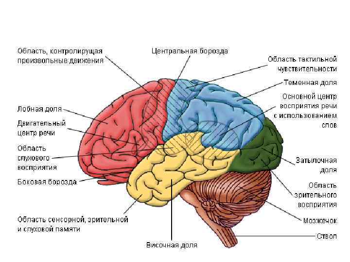 Центральный (корковый) отдел v Осознаваемое восприятие изменений положения головы происходит в результате последовательной обработки информации в вестибулярных ядpax ствола, затем в таламусе, и, наконец, в постцентральной извилине в коре. v Еще одна проекция вестибулярной системы имеется во вторичной моторной коре. v В осознании пространственного расположения и схемы тела участвуют также заднетеменные зоны (5 и 7 поля по Бродману), где происходит объединение вестибулярной, зрительной и соматосенсорной чувствительности. локализуется в височной области коры большого мозга, несколько кпереди от слуховой проекционной зоны (21 — 22 поля по Бродману, четвертый нейрон).