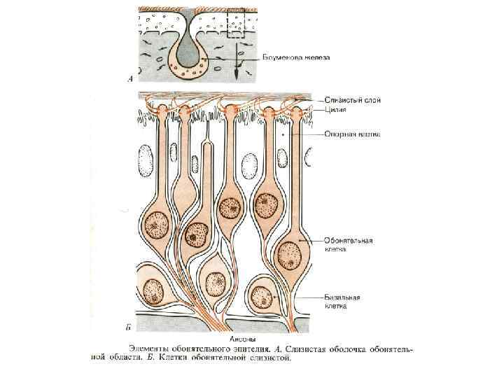 Клеточная структура обонятельного эпителия позвоночного животного