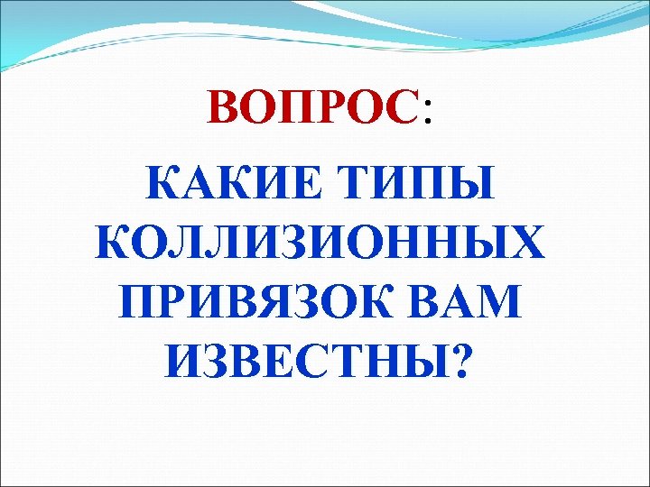 ВОПРОС: ВОПРОС КАКИЕ ТИПЫ КОЛЛИЗИОННЫХ ПРИВЯЗОК ВАМ ИЗВЕСТНЫ?