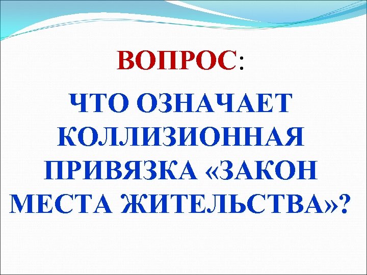 ВОПРОС: ВОПРОС ЧТО ОЗНАЧАЕТ КОЛЛИЗИОННАЯ ПРИВЯЗКА «ЗАКОН МЕСТА ЖИТЕЛЬСТВА» ?