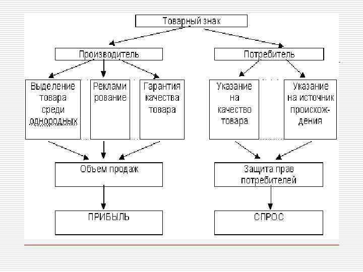 Что дает торговая марка «trademark» своему владельцу? o o o o Юридическая защитой, предохраняет товары от нежелательной имитации, фальсификации и контрафакта. Торговая марка облегчает конкуренцию с другими товарами, создает круг постоянных покупателей. Торговая марка привлекает внимание потребителей к новым товарам и может помочь в работе с разными группами потребителей, помогая распространить успех на другие товары. Торговая марка является капиталом, она дает эластичный отклик на уменьшение цены (увеличение продаж) и неэластичный отклик на увеличение цены (сохранение объема продаж); повышает рентабельность и эффективность рекламы. Торговая марка для потребителя выступает в качестве некой гарантии качества; субъективно снижается риск покупки. Торговая марка позволяет чувствовать себя принадлежащим к определенной социальной группе. Приобретение соответствующих товарных марок обеспечивает потребителю получение определенного статуса. Для многих покупателей товаров с дорогими марками именно символические, а не реальные преимущества товаров являются основной выгодой, за которую платятся дополнительные деньги.