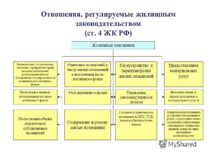 Предметом регулирования жилищного права является определенная совокупность общественных отношений, которые получили в законодательстве и в юридической литературе название "жилищные отношения".
