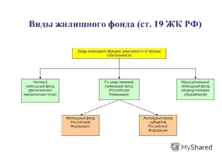 Жилищный кодекс • Основным актом, регулирующим жилищные отношения, безусловно, является ЖК РФ, который определяет основные принципы реализации конституционного права граждан Российской Федерации на жилище, устанавливает основные начала правового регулирования жилищных отношений при различных видах использования недвижимости в жилищной сфере