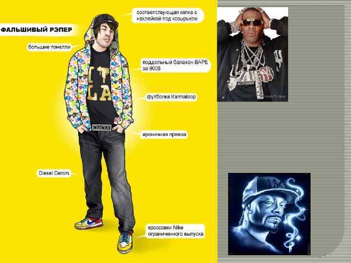 Репери (вони ж хіп-хопери) - ті, що тягають на плечі магнітофони, носять одяг на пару розмірів більше і танцюють на вулиці, а деколи непогано малюють граффіті. До основним хіп-хоп культури, що становить, можна віднести: реп, брейк, граффіті, ді-джеїнг, деякі види спорту. Реп, або читання, мабуть, головний спосіб дії цієї субкультури на свідомість тих, що оточують. Фактично реп можна назвати мелодекламацією. Головне в репі ритм слів і текст. Хіп-хоп зароджувався як музика і субкультура негритянського гетто з різко агресивним відношенням до білого населення. У цьому сенсі лідери хіпхопа в Росії опинилися в дивному положенні. Проте був знайдений вихід з ситуації, і зараз тексти у дусі російської долі пристосовуються до нових музичних форм, тобто до репу. Зіставлення будується не на расовій ознаці, а по соціальних (бідні - багаті), культурних (конформісти-нонконформісти) і іншим категоріям.
