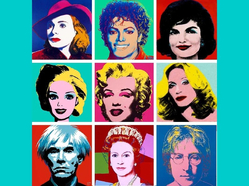 Andy Warhol: è il più noto Warho artista della Po Art. Di professione era un pubblicitario, ma dagli inizi degli anni Sessanta si dedica esclusivamente alla pittura. Predilige la fotografia, per realizzare vaste composizioni in cui ripete, in maniera ossessiva, prodotti mitici dell'industria alimentare americana e del cinema. Non dipinge veramente ma stampa più volte la stessa matrice cambiando i colori