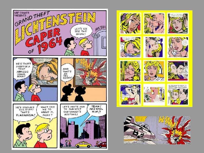 Gli artisti della Pop Art si appropriano del linguaggio visivo dei fumetti, dei manifesti pubblicitari, dei giornali illustrati, riproducendo le immagini che appartengono alla quotidianità in dimensioni ingigantite, replicandole ossessivamente.