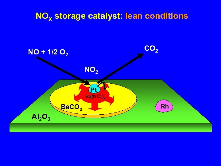 NOX storage catalyst: lean conditions CO 2 NO + 1/2 O 2 NO 2 Pt Ba(NO 3)2 Ba. CO 3 Al 2 O 3 Rh