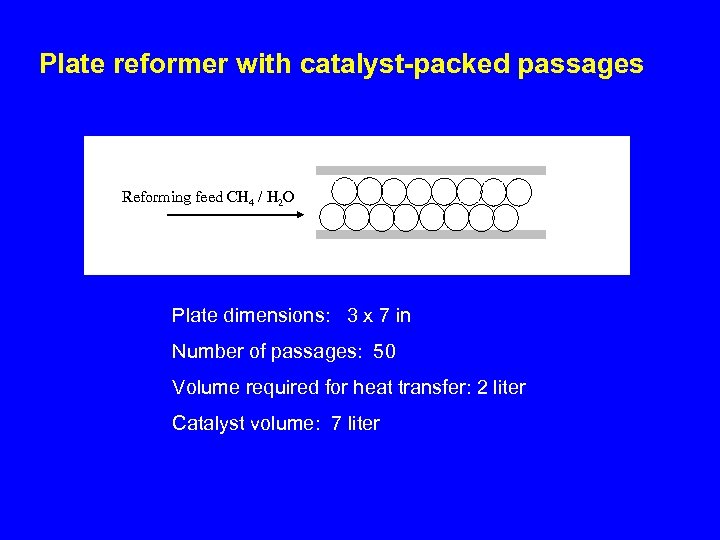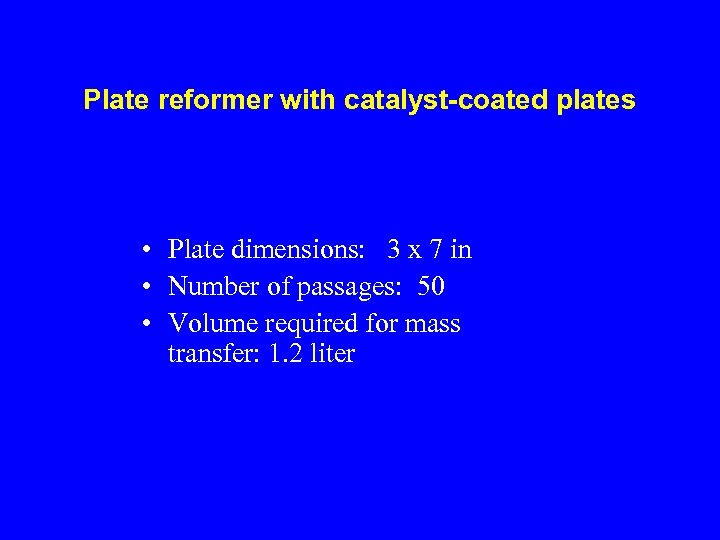 Plate reformer with catalyst-coated plates • Plate dimensions: 3 x 7 in • Number of passages: 50 • Volume required for mass transfer: 1. 2 liter