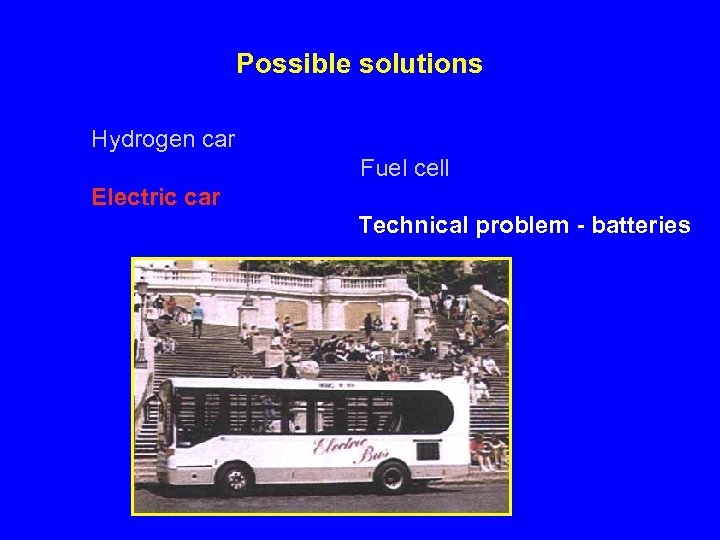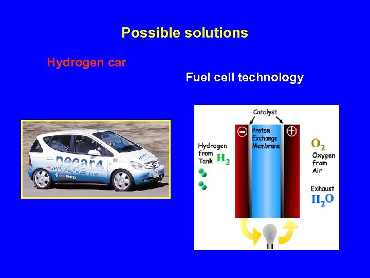 Possible solutions Hydrogen car Fuel cell Electric car Technical problem - batteries