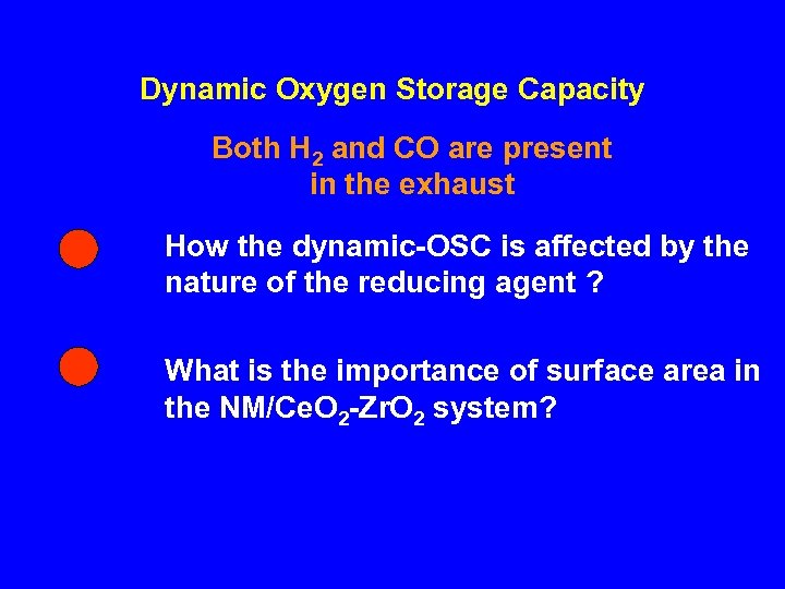 Dynamic Oxygen Storage Capacity Both H 2 and CO are present in the exhaust How the dynamic-OSC is affected by the nature of the reducing agent ? What is the importance of surface area in the NM/Ce. O 2 -Zr. O 2 system?