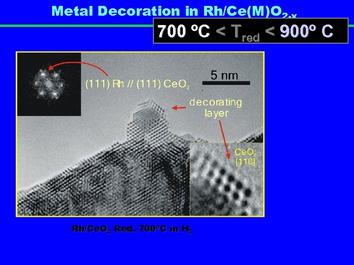 Metal Decoration in Rh/Ce(M)O 2 -x 700 ºC < Tred < 900º C Rh/Ce. O 2 Red. 700ºC in H 2