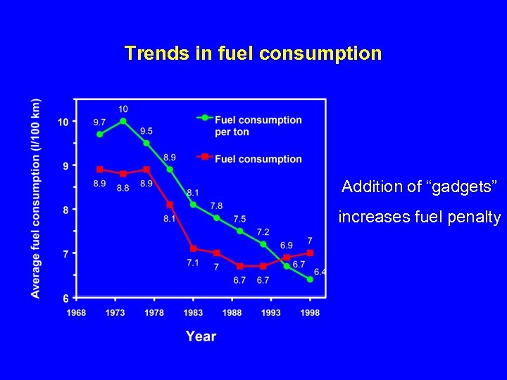 Trends in fuel consumption Addition of “gadgets” increases fuel penalty