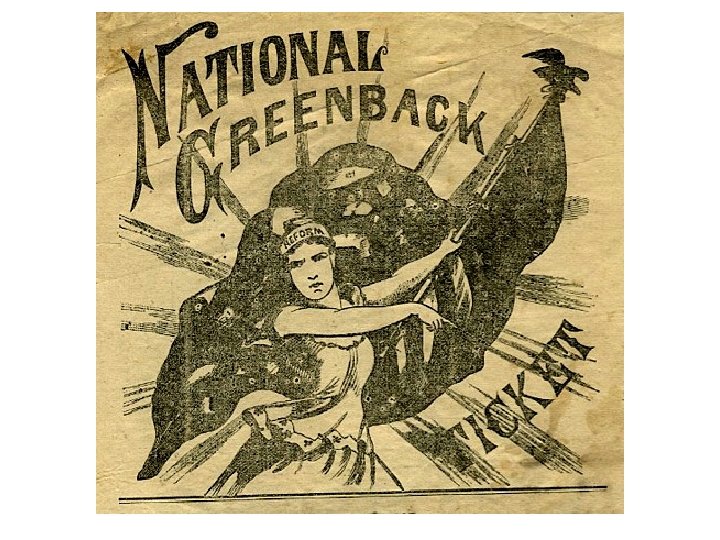 Creating Inflation • farmers’ common problem = debt • attack nation's monetary system • 1873: Congress declared all federal $ must be backed by gold - limited money supply and benefited the wealthy • farmers wanted inflation to challenge policy AND pay off debt