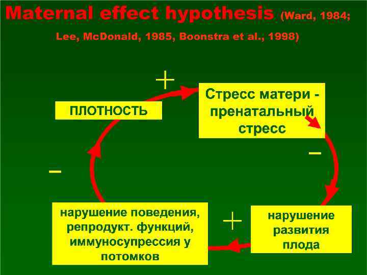 Уровень стрессированности Гипотеза обусловленной стрессом регуляции численности популяций мелких млекопитающих (Christian J. J. 1950, 1963, 1980) плотность стресс Плотность населения созревание репродукция выживание