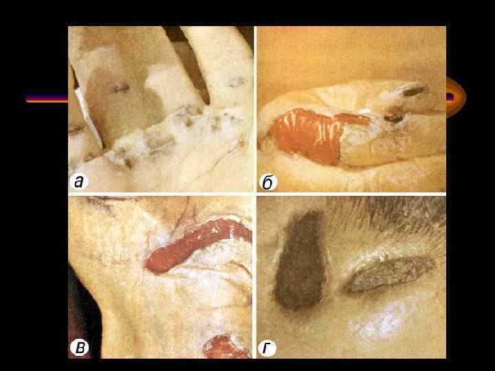 Поражения молнией КОЖНЫЕ ПОВРЕЖДЕНИЯ • у 63% множественные ожоги (только у 11% нет) • «оперение» • контактные ожоги от мет. Предметов и бижутерии • ожоги обычно поверхностные