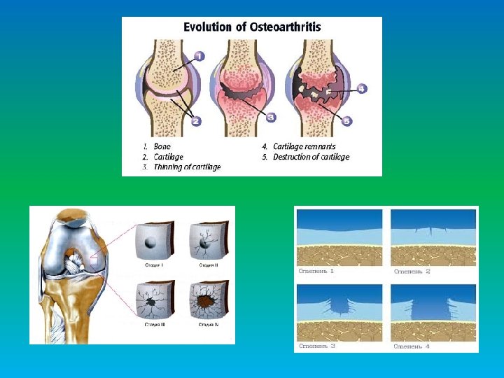 ЭТИОЛОГИЯ 1. Хроническая микротравматизация хряща. 2. Возраст пациентов. 3. Ожирение. 4. Нагрузка на суставы. 5. Врожденные или приобретенные дефекты опорно-двигательного аппарата, воспалительные процессы 6. Наследственная