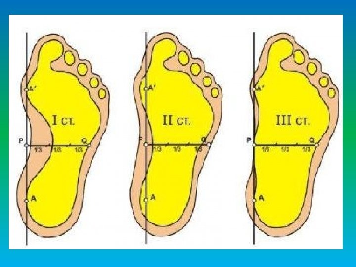 НАИБОЛЕЕ ЧАСТЫЕ ПРОБЛЕМЫ продольное плоскостопие норма I ст. II ст. пяточные шпоры поперечное плоскостопие III ст. деформации ГСС разница длины ног