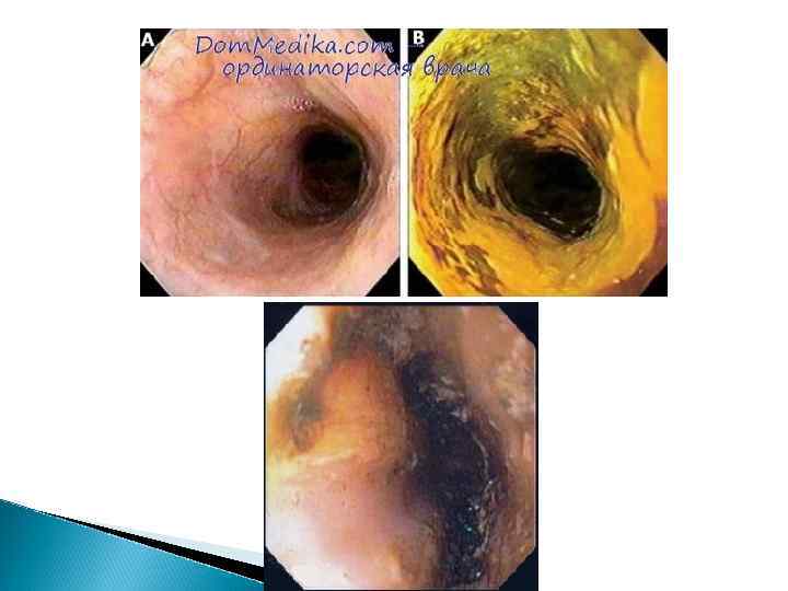 Эзофагоскопия в первое время нежелательна, в дальнейшем возможна только в периоде рубцевания и эпителизации слизистой оболочки, при этом проводить ее следует крайне осторожно. Эзофагоскопия позволяет определить протяженность поражения, проследить за динамикой процесса, своевременно выявить формирующиеся стриктуры (они чаще образуются в дистальном отрезке пищевода, над кардиальным сфинктером; несколько реже в области глоточнопищеводного соединения и на уровне бифуркации трахеи). Осторожное эндоскопическое исследование позволяет определить границы ожога, наличие некротического струпа, изъязвления и кровоточивость стенок, рубцевание и грануляции.