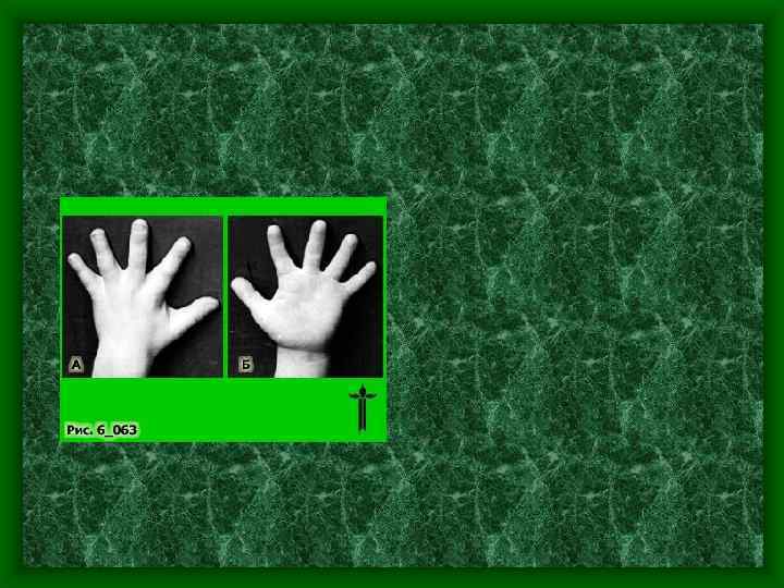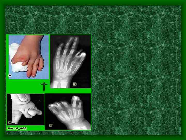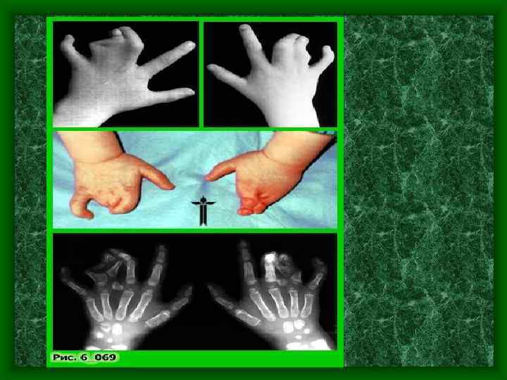 • Сочетание синдактилии с «расщеплением» кисти