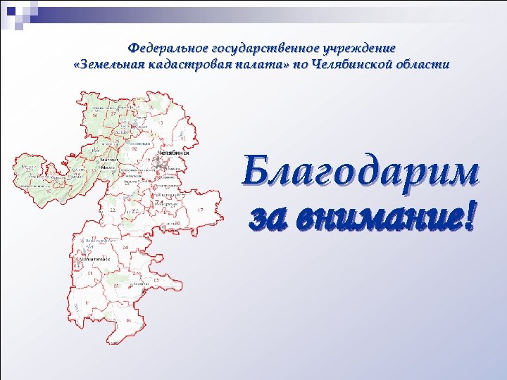 Федеральное государственное учреждение «Земельная кадастровая палата» по Челябинской области Благодарим за внимание!