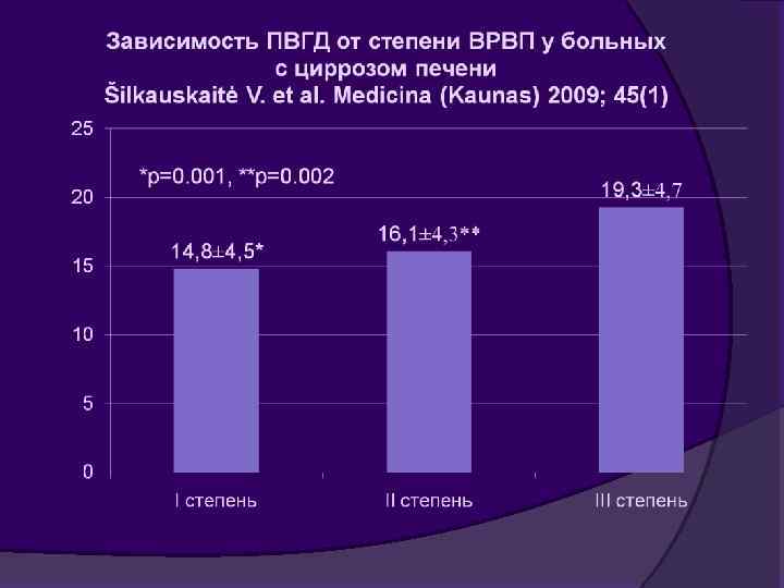 Влияние различных методов лечения на ПГ Метод лечения Портальный кровоток Резистентность портальной системы Давление в портальной системе Вазокострикторы (например, БАБ) ↓↓ ↑ ↓ Вазодилататоры (например, нитраты) ↓ ↓ ↓ Эндоскопическая терапия - - - TIPS/хирургическое шунтирование ↑ ↓↓↓