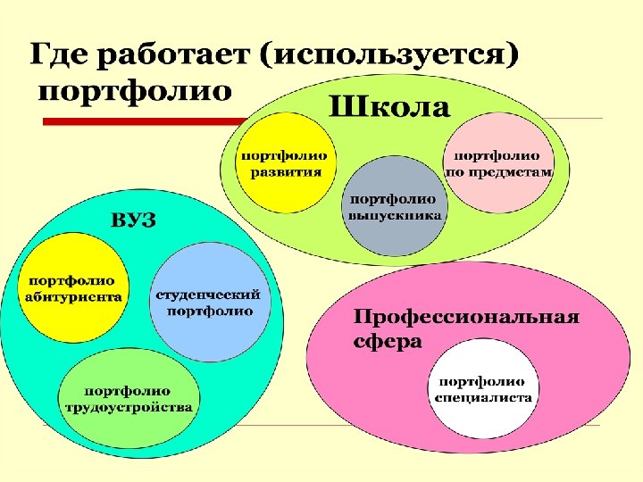 Виды «портфолио» Портфолио n документации показательный рабочий оценочный