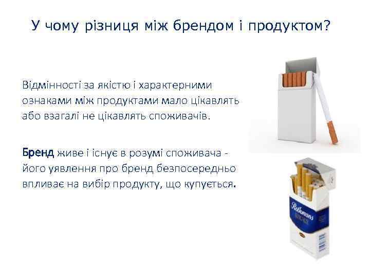 У чому різниця між брендом і продуктом? Відмінності за якістю і характерними ознаками між продуктами мало цікавлять або взагалі не цікавлять споживачів. Бренд живе і існує в розумі споживача його уявлення про бренд безпосередньо впливає на вибір продукту, що купується.