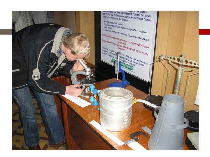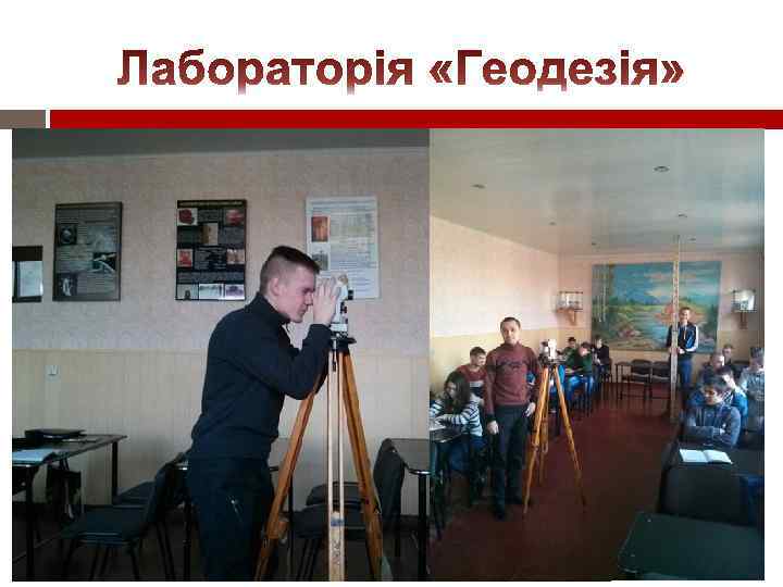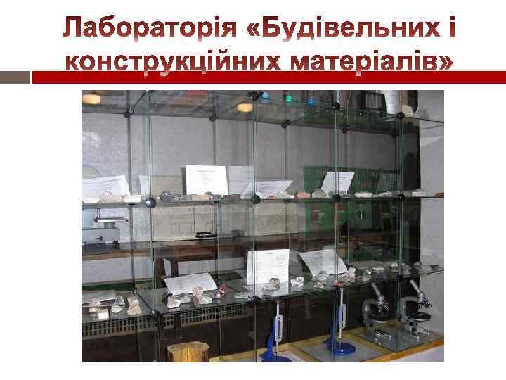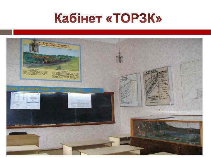 МАТЕРІАЛЬНО-ТЕХНІЧНЕ ЗАБЕЗПЕЧЕННЯ Якісний навчальний процес на відділенні забезпечують лабораторії «Геодезія» , «Неруйнуючий контроль рейок» , «Механізований колійний інструмент» , кабінети «Залізнична колія» , «Технічне обслуговування і ремонт залізничної колії» «Штучні споруди» які обладнані аудіо-, відеотехнікою, комп’ютерною технікою, ТЗН, макетами та стендами, в тому числі власної розробки. Для всіх кабінетів і лабораторій розроблено паспорти, в яких вміщено загальні відомості, перелік обладнання, методичного забезпечення.