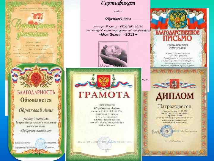 Портфолио индивидуальных достижений ученицы 10 класса ГБОУ ЦО 556 Обрезковой Анны. 2011 -2012