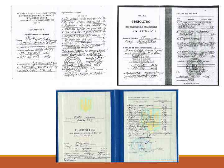 Курси № Назва курсу Термін проходження 1. Програма педагогічних 15. 05. 2000 – працівників ПТО 26. 10. 2001 2. Сучасні форми і методи навчання у професійній освіті 3. Курси підвищення кваліфікації Навчальний заклад № свідоцтва Донецький інститут післядипломної освіти АК № 010011 10. 04. 200627. 04. 2006 ЛНПЦ ЛПНУ № 233177 21. 02. 201111. 03. 2011 ЛНПЦ ПТО 12 СПК № 710253