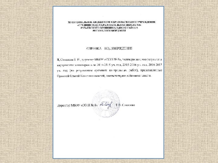 14. Награды и поощрения № п/п Награды и поощрения Год 1 Благодарственное письмо Главы РМ 2016 г. 2 Грамота МБОУ «СОШ № 8» 2015 г. 3 Грамота МБОУ «СОШ № 8» 2016 г. 4 Грамота МБОУ «СОШ № 8» 2017 г. 5. Благодарственное письмо от социальной сети nsportal 2017 г.