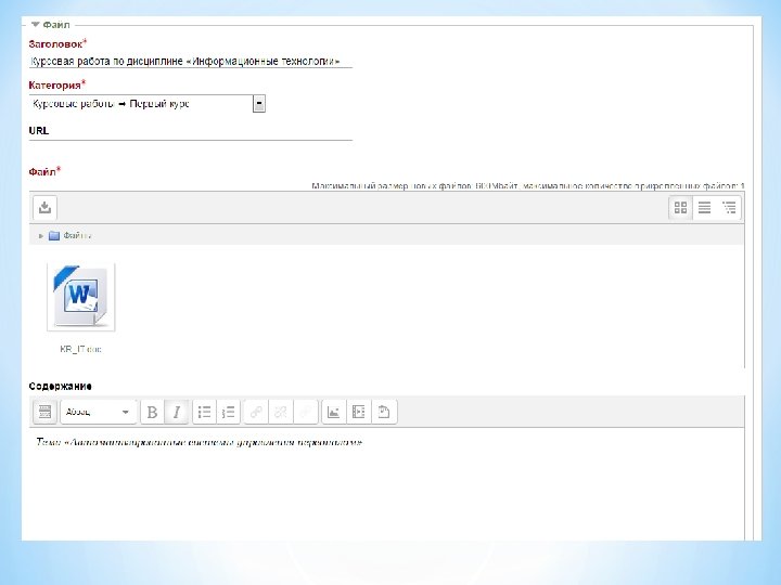 ♦ Комментарии, создающие обратные связи. ♦ Менеджер экспорта, позволяющий сохранить портфолио в SCORM формате (Sharable Content Object Reference Model, «образцовая модель объекта содержимого для совместного использования» ); ♦ Менеджер импорта, позволяющий осуществлять обмен документами в рамках одной установки Moodle и использование внешних пакетов SCORM в портфолио; ♦ Уведомление об обмене мнениями;