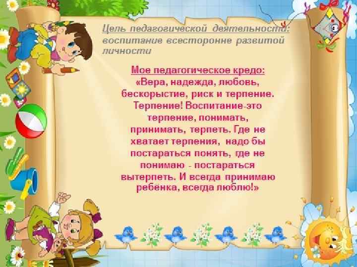 И жизнь я детскому саду посвящаю, И детям любовь я дарю, Поверьте мне, я точно знаю: Профессией своей я дорожу.