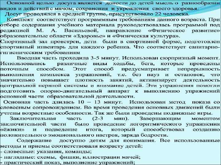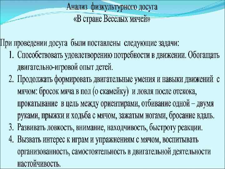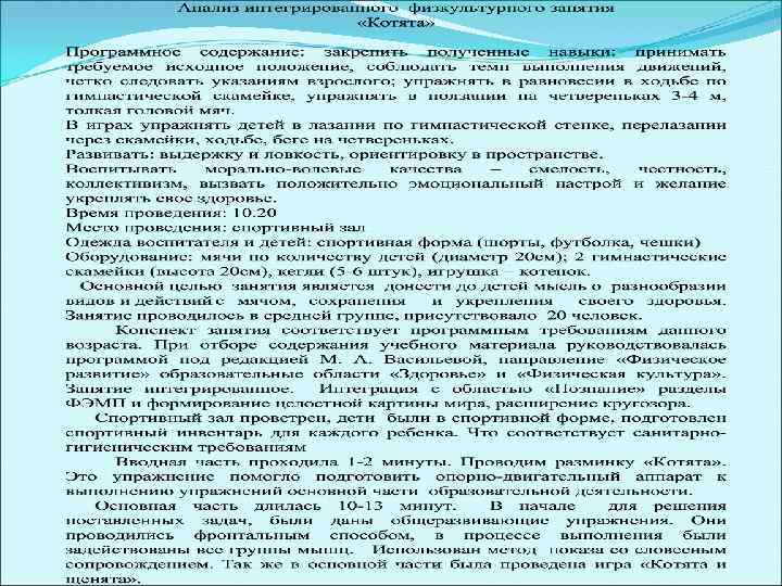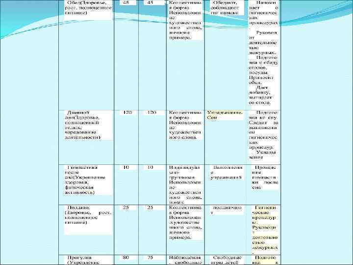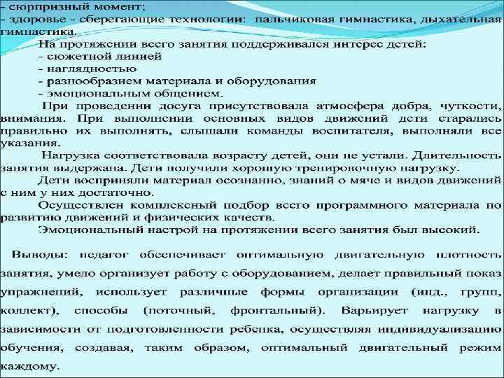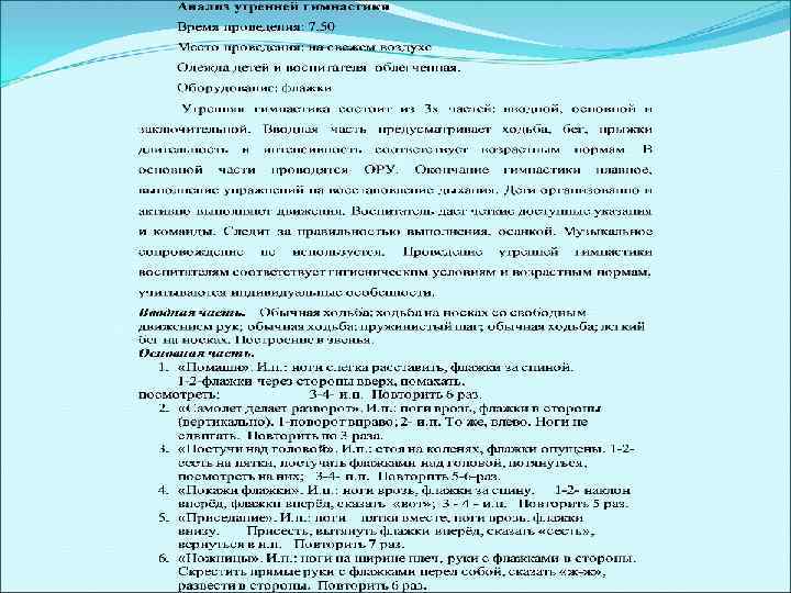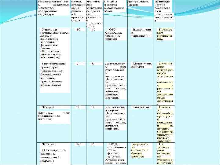 Анализ проведения режимных процессов Наблюдая за организацией режимных процессов в течение дня, отметила следующее: в группе созданы оптимальные условия для их реализации; предусмотрены различные формы организации (прогулки, экскурсии, занятия, игры, трудовые и др. процессы); Используются словесные, наглядные приемы, личный пример.
